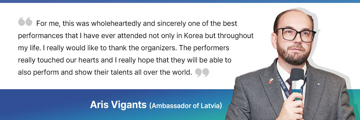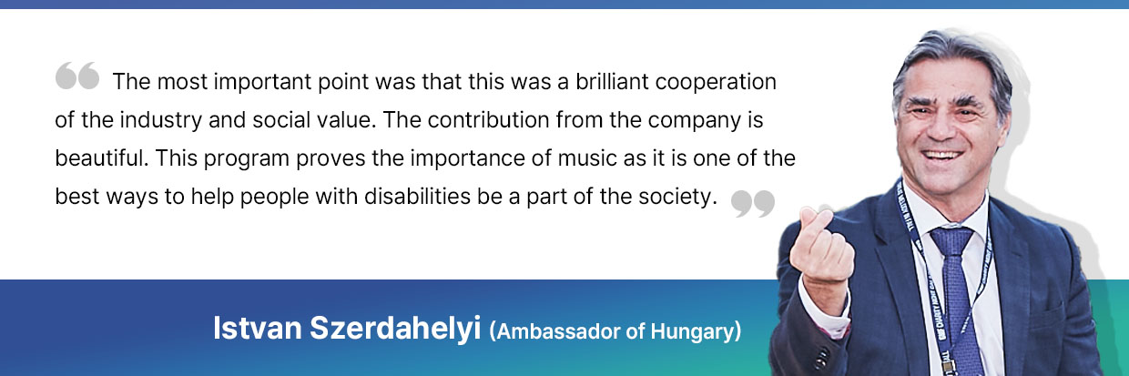 On a quiet autumn night in Korea, the beautiful melodies transcended borders and moved everyone, which filled the night with colorful emotions. As Jean Sibelius said, “Music begins where the possibilities of language end.” The boundaries between languages disappeared as music is a universal language. It clearly showed that the distinction between disabled and non-disabled people is meaningless, and that even if they speak different languages and have different appearances, they can share the same emotions through the language of music.