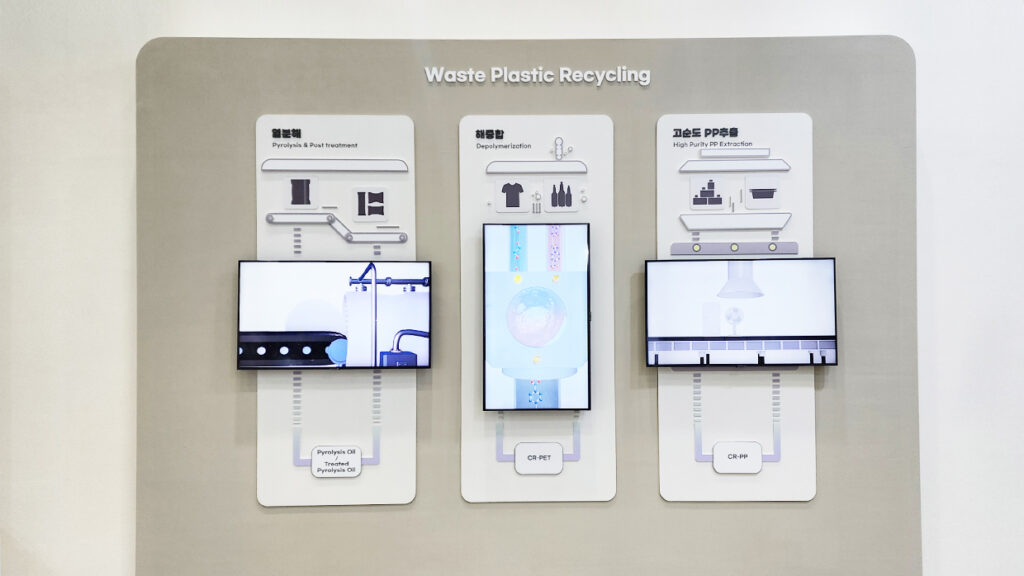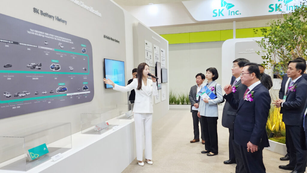 Specifically within the SK Group exhibition hall, observers can witness SK’s practical efforts for a sustainable future facilitated by smart technology. Furthermore, a diverse array of technological capabilities on display serves as evidence that SK has already initiated its path towards achieving net-zero. The SK Group exhibition hall is organized into four zones- EV Battery, Waste Recycling, Clean Mobility, and Clean Energy.