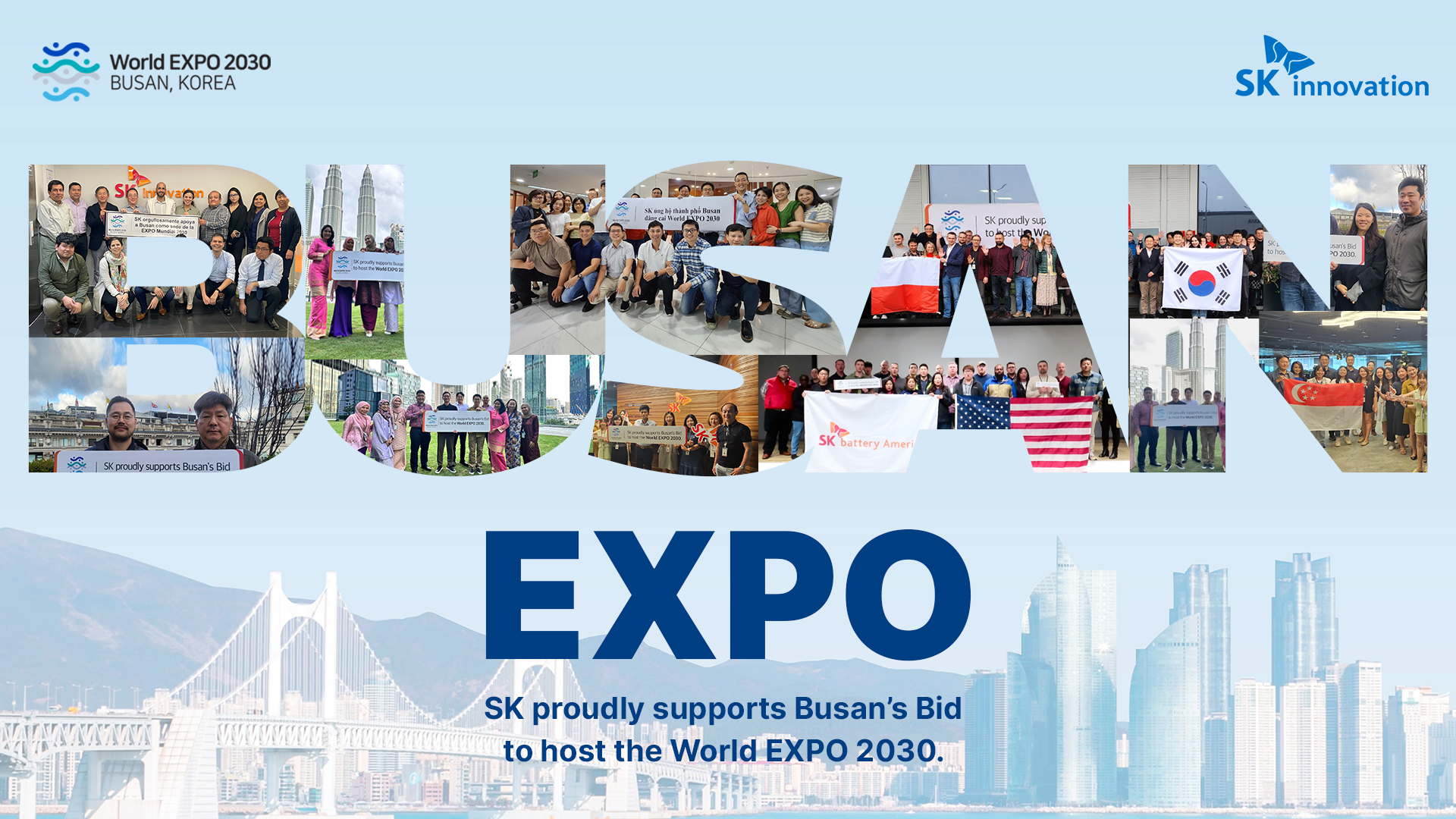 As Busan journeys towards a more promising future for greater aspirations reaching beyond the borders of Korea and onto the global stage, members of SK Innovation and its affiliates worldwide have stepped forward to express their support as we await the announcement of the chosen host city for the 2030 Busan World Expo.