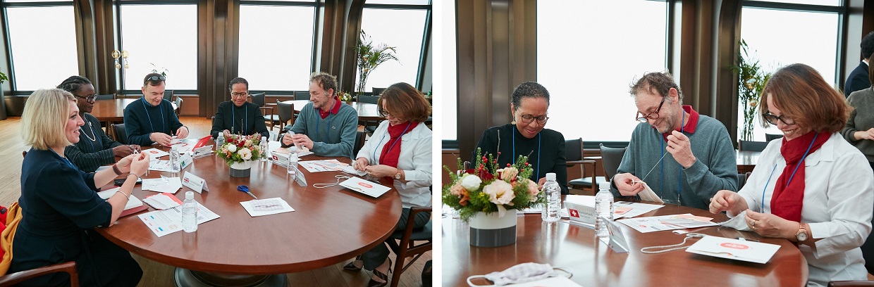 After Vivace Ensemble’s performance, the guests from ASAS participated in the Warm Mask campaign, which is hosted by the Korea Childhood Leukemia Foundation and sponsored by SK Innovation’s 1% Happiness Sharing Fund, to show their support for children with cancer. The purpose of Warm Mask campaign is to encourage people to make and gift reusable cloth masks that can be used for a long time despite being washed several times to prevent infections in children with leukemia and other cancers that have weakened immune systems due to frequent chemotherapy. The Ambassadors Spouses Association in Seoul made hand-sewn masks, hoping for a speedy recovery for the patients and for a warm spring.