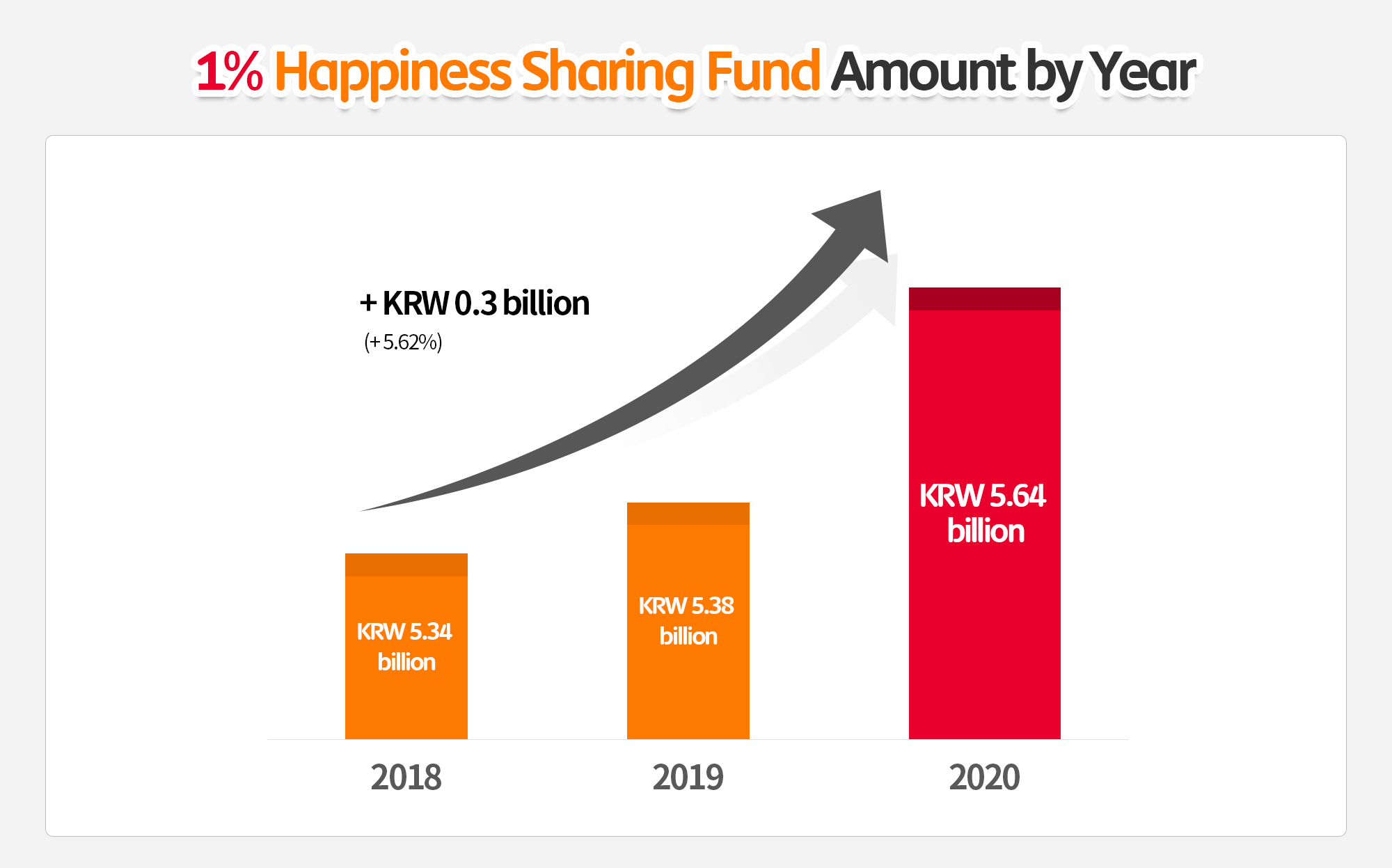 Last year, the fund generated nearly KRW 5.38 billion, and this year the amount will increase to KRW 5.64 billion, including the amount from the matching grant program. With the continued support of SK Innovation members since 2018, when the fund was first officially implemented, we expect to raise the total cumulative amount of “1% Happiness Sharing” fund to KRW 16.36 billion by the end of this year.