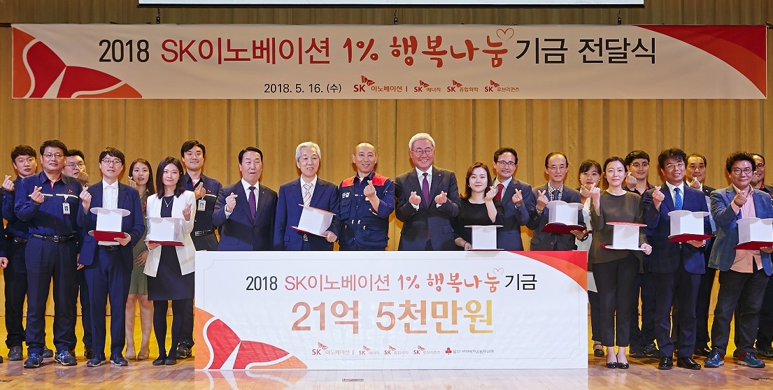 “1% Happiness Sharing Fund” dated back in 2017 under the agreement reached during SK Innovation’s Union-Management negotiation in September. It is funded by SK Innovation employees who voluntarily donate 1% of their base salary to help vulnerable people and solve the various social problems in Korean communities.