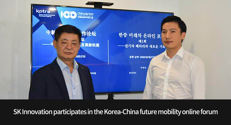 Amidst all this, on August 27th, SK Innovation was invited as a representative battery company in Korea to give a presentation at the Korea-China future mobility Online Forum (hereinafter referred to as “forum”) that was held jointly by KOTRA and China EV100, a professional association in the field of future mobility in China. The main purpose of this forum is to strengthen the cooperation between Korea and China in line with the rapidly changing automobile market trends from the internal combustion engine to future mobility.