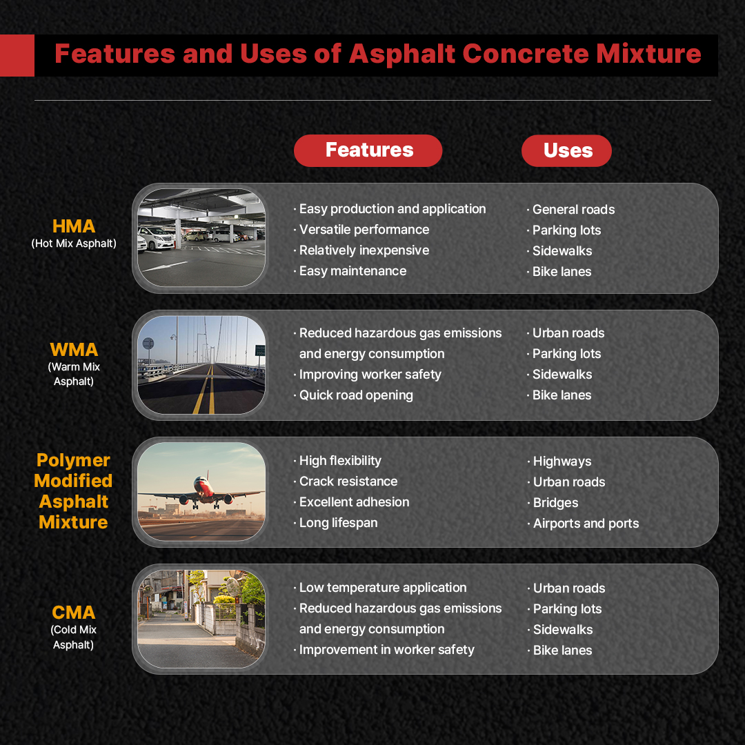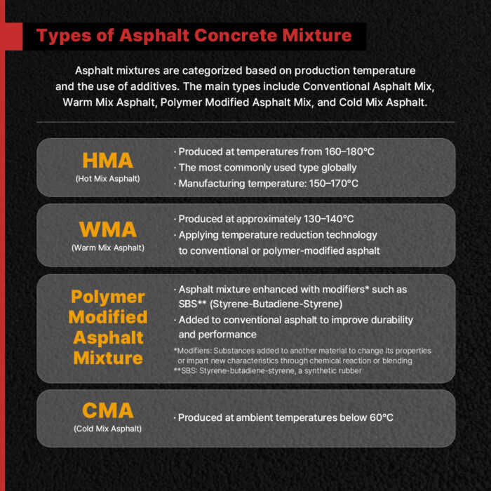 In this post, let’s explore the basics of asphalt, an essential material for road construction and our everyday companion of busy city life. We are going to break down the different types of asphalt concrete mixtures and how they’re made, highlighting their features and uses. Additionally, we’ll take a look at how SK Energy, a subsidiary of SK Innovation, applies cutting-edge technology to improve durability and performance of asphalt.