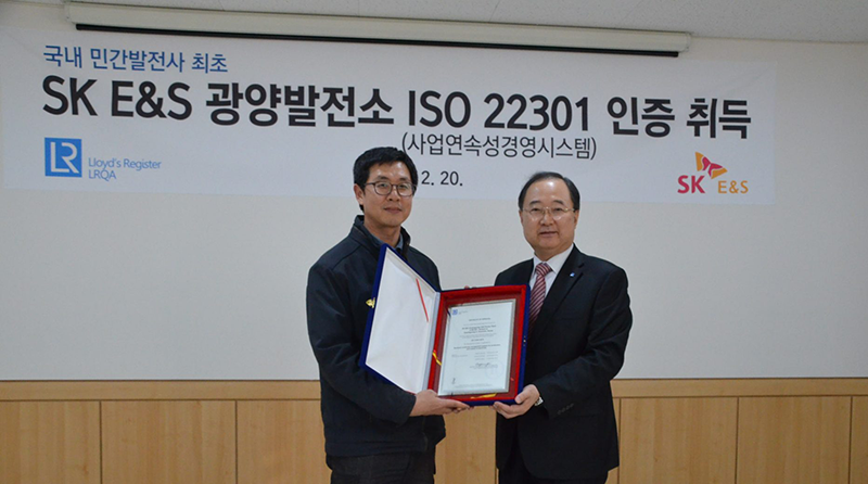 SK E&S is Korea’s first private power company to obtain ISO22301 certification.