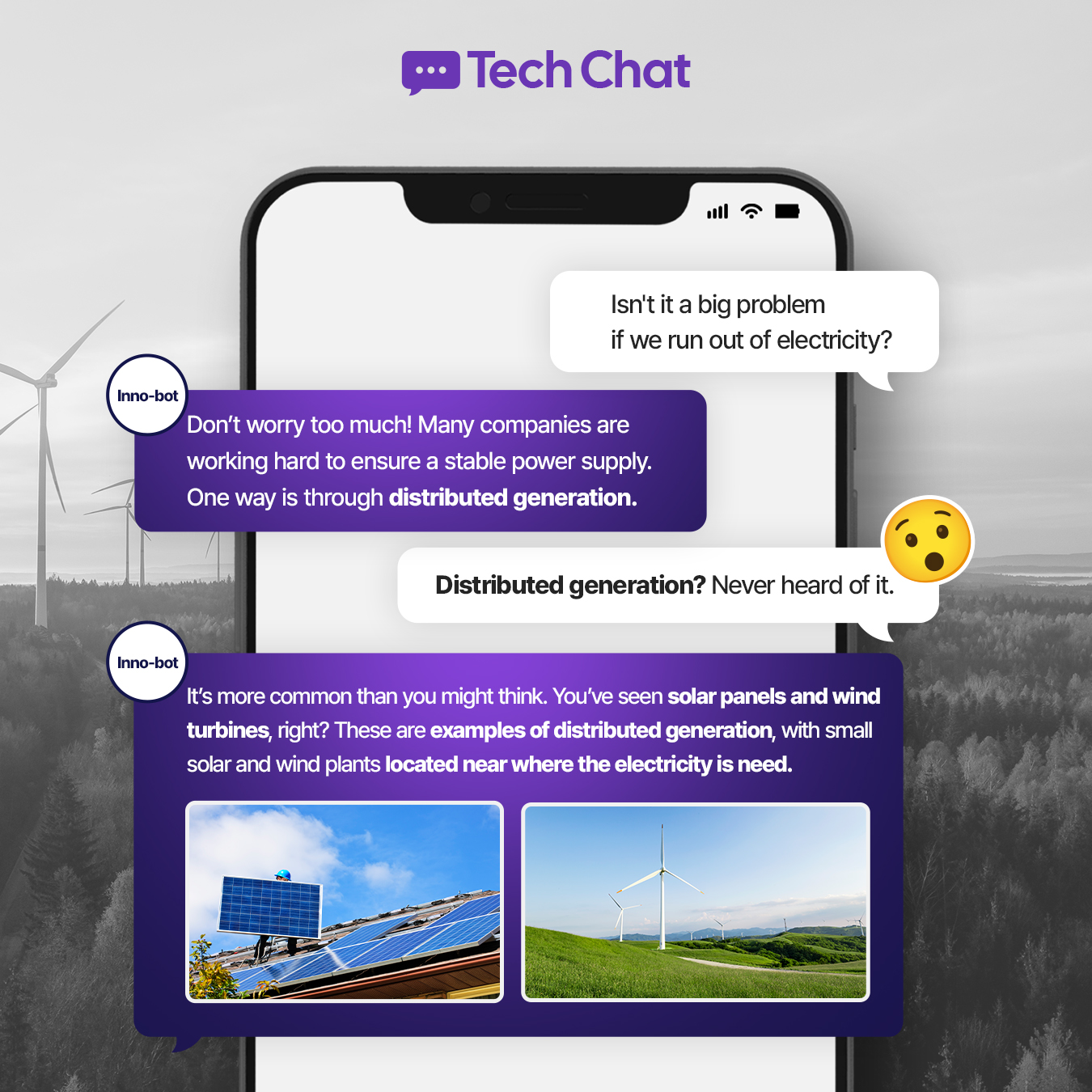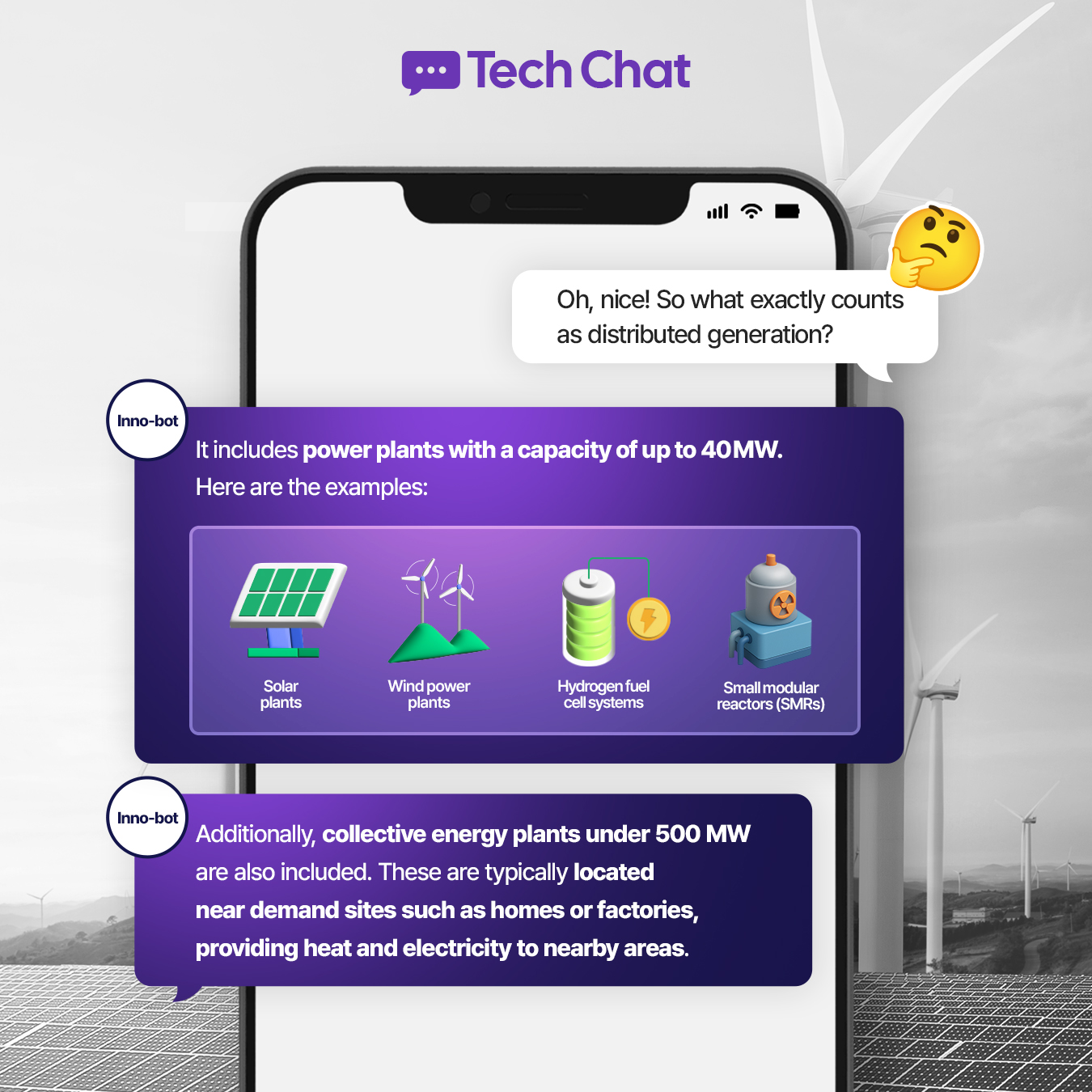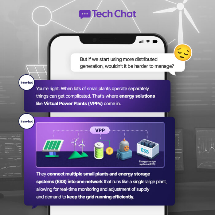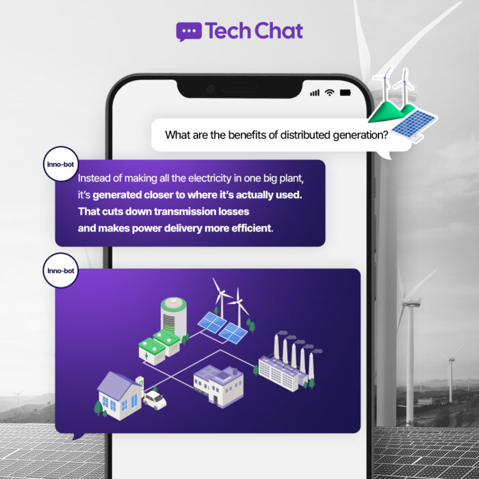 Join Inno-bot as it helps a curious mind learn about distributed generation—bringing power closer to where it’s needed. Distributed generation covers a range of technologies, including solar panels, wind turbines, and hydrogen fuel cells. We also touch on Virtual Power Plants (VPPs), which unify various energy sources for greater flexibility.