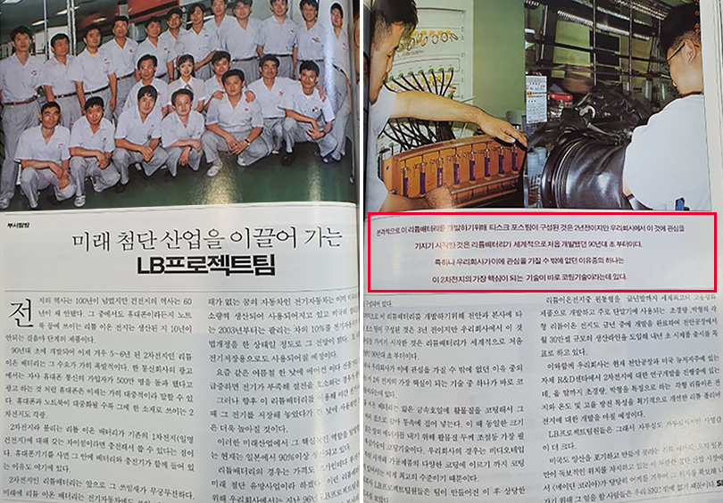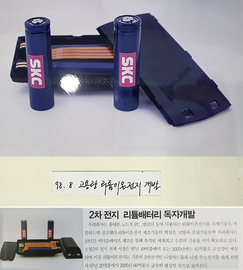 In August 1998, SK succeeded in independently developing its high-capacity lithium-ion battery, and related information can be found in the Company Newsletter released in September 1998. “SK has succeeded in developing lithium-ion batteries used in mobile phones, laptops, PCs, and camcorders with its own technology,” and “the core of lithium-ion battery manufacturing technology is coating and assembly technology, of which SK already has the world’s best technology accumulated through videotape manufacturing over 20 years.” The article was written with confidence in the technical skills of the company.