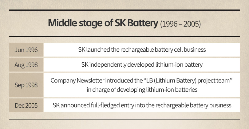The history of SK Innovation’s electric battery is now approaching the 40th year. This time, let’s take a look at its Middle stage started from 1996 to 2005.