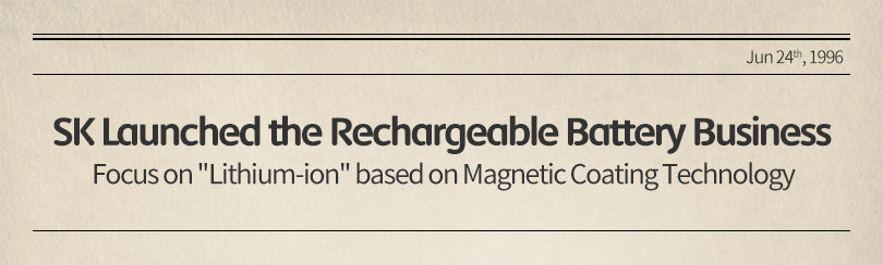 As introduced in the Early stage episode, in 1983 SK developed the batteries that could make cars run, followed by the success of the test running at 130 km/h. Then, a new challenge began. According to the press releases on June 24, 1996, SK is “seeking to participate in the rechargeable battery business.” Therefore, SK “has recently formed a new business development team under the policy of participating in the rechargeable battery project based on the magnetic coating technology accumulated in past businesses.”