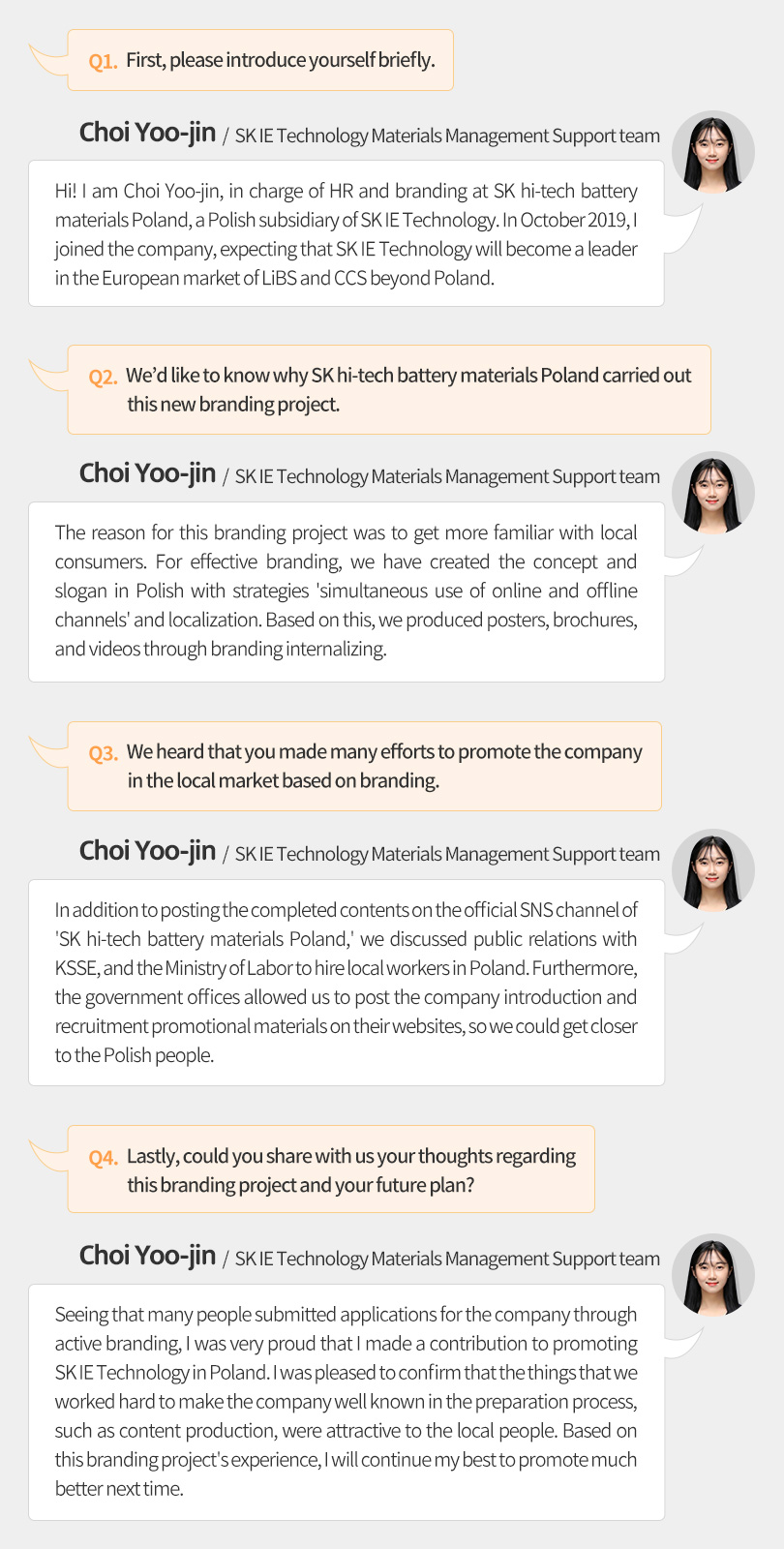 Let us get more details from Choi Yoo-jin, an employee of the Materials Management Support team of SK IE Technology, who was in charge of SK hi-tech battery materials Poland’s branding project.
