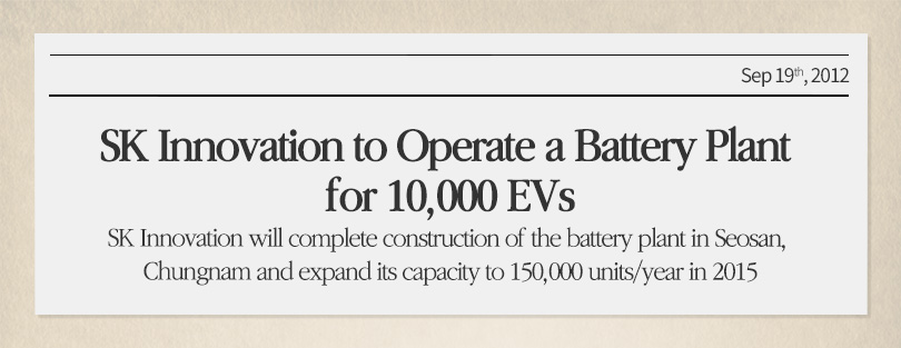 09 | Jul. 2015 – SK Innovation completed expansion of Seosan battery factory