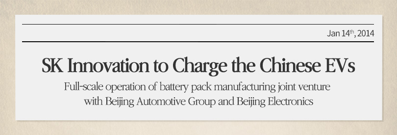 About three months later, on July 5, 2013, SK Innovation signed a contract to establish a joint venture for EV batteries with Beijing Automotive Group and Beijing Electronics.