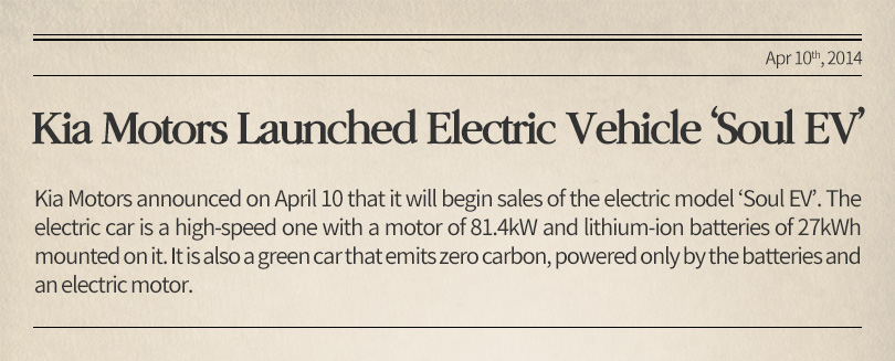 08 | Apr. 2014 – Kia Soul EV using SK Innovation batteries was launched