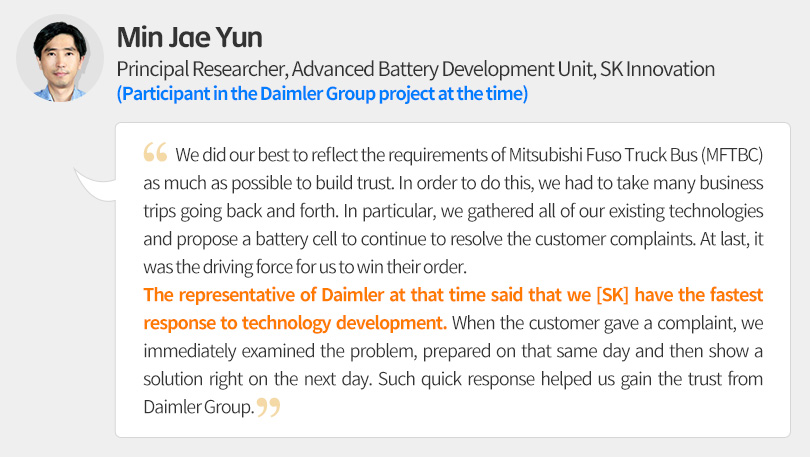 The article added, “SK has assured its qualification to join as the priority business partner in hybrid and electric car development that Daimler group will proceed in the future after its conclusion of supply contract,” and “Germany’s Mercedes-Benz also belongs to Daimler group, so SK is likely to supply the battery not only for commercial hybrid cars but also for electric passenger cars.”