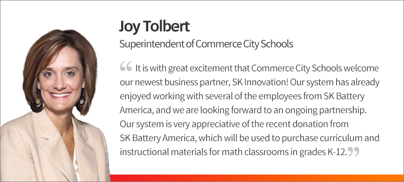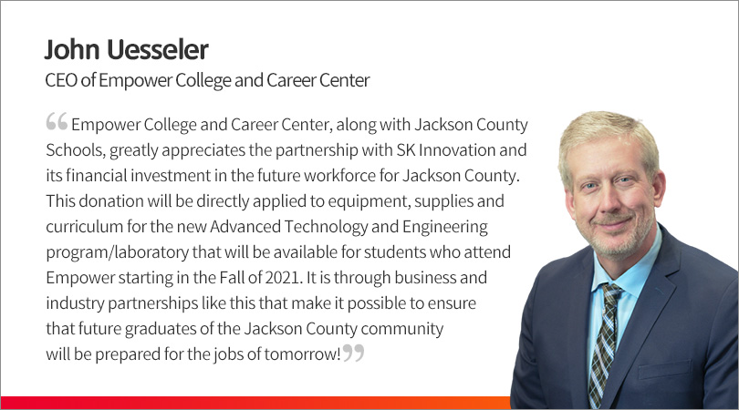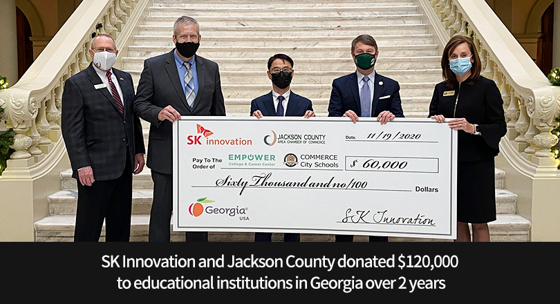 SK Innovation, which is building a large-scale EV battery plant in Jackson County, Georgia, USA, and Jackson County have donated a total of USD 120,000 over 2 years to the Empower College & Career Center (EC3) and the Commerce City Schools (CCS) in Georgia.