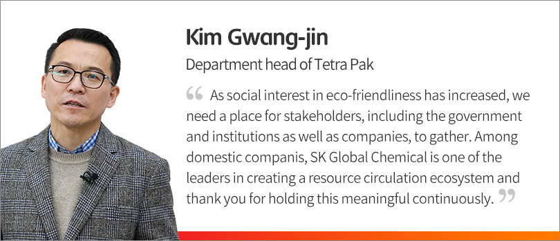 This forum took a step forward from the last year’s “Eco-friendly Forum for Plastic Packaging Materials” hosted by SK Global Chemical. This year, as the need to solve the waste plastic problem emerged due to the increase in demand for parcel delivery due to COVID-19, the participation of government agencies, academia, and companies that shared the common concern increased significantly, expanding to a pan-national event.