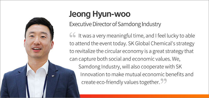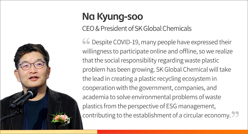 The first day was wrapped up with a closing speech of CEO & President of SK Global Chemical Na Kyung-soo. He expressed his gratitude to the public, government, and academia for voluntarily participating in the forum to solve the issues of waste plastics.