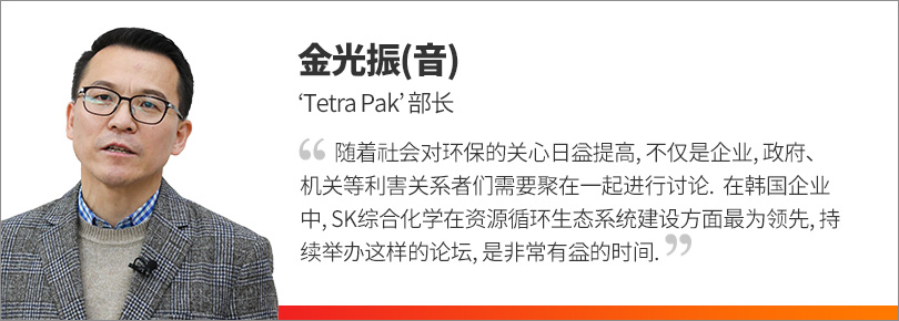 此次论坛比去年由SK综合化学主办的“塑料包装材料环保论坛”更进一步。特别是,今年因“新冠肺炎”导致快递需求的增加,解决废旧塑料的问题成为了社会热点,因此政府机关、学术界、各企业踊跃参加本次论坛,扩大到了泛国家论坛.