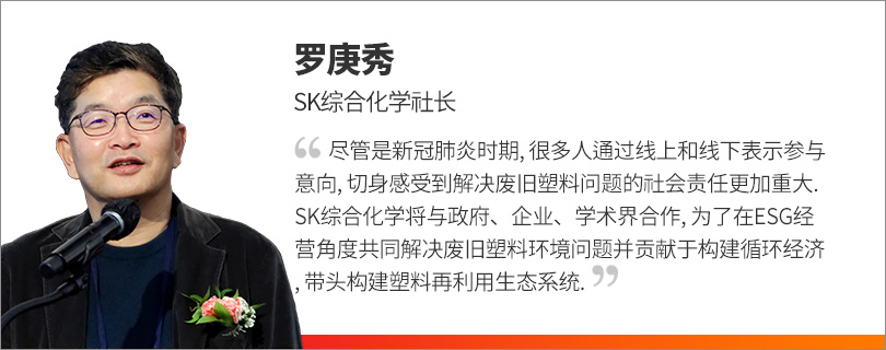 论坛第一天以SK综合化学总经理罗京洙(音)的结束发言结尾。罗庚秀 社长向为解决废旧塑料问题而主动参加论坛的民、官、学表示了感谢.
