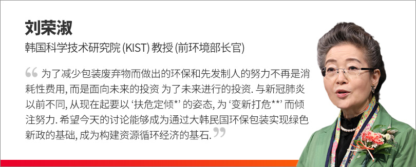“为了减少包装废弃物而做出的环保和先发制人的努力不再是消耗性费用,而是面向未来的投资. 与新冠肺炎以前不同,从现在起要以‘扶危定倾**’的姿态,为‘变新打危***’而倾注努力. 希望今天的讨论能够成为通过大韩民国环保包装实现绿色新政的基础,成为构建资源循环经济的基石.”
