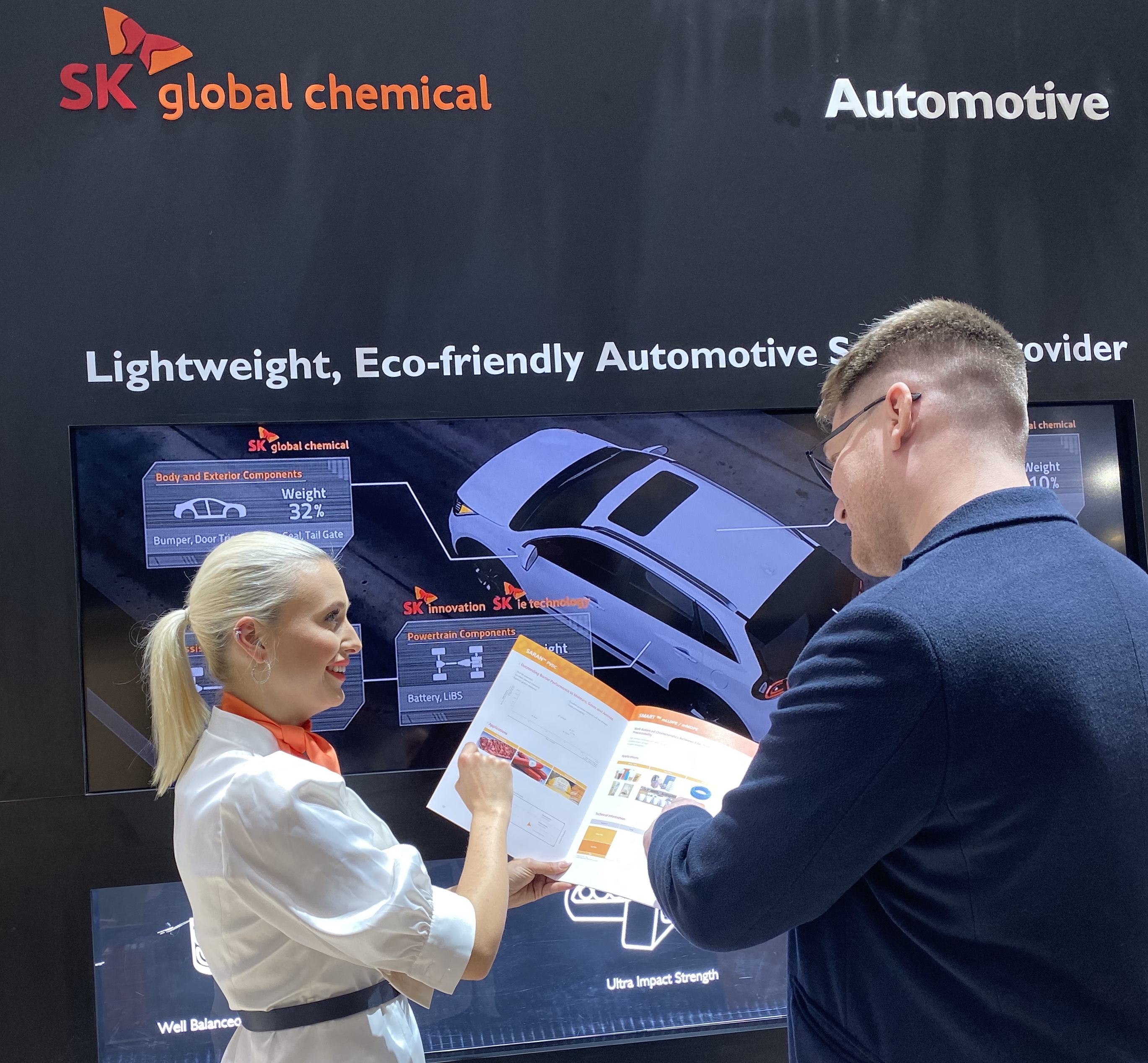 The major themes of SK Global Chemical’s booth this time are: ▲One-Stop Packaging Solution and ▲Environmental, Ultralight Automotive Solutions.