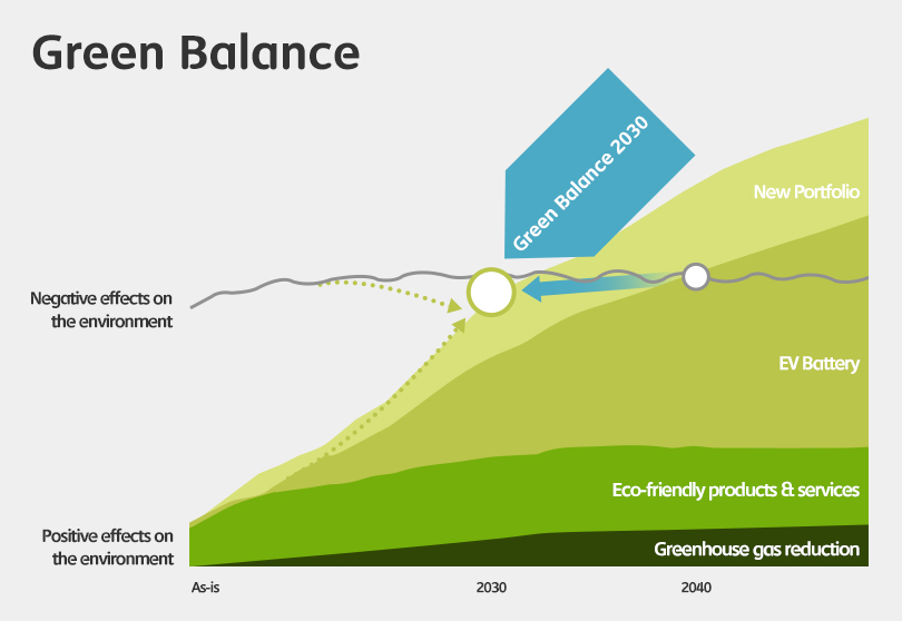 In 2019, SK Innovation declared “Green Balance 2030” as a goal, as well as a practical tool for ESG management. To achieve this goal, the company is actively promoting Portfolio Transformation in accordance with three strategic directions: Green, Technology, and Global. First of all, SK Innovation is planning to leap to become a global top player with differentiated technology by investing boldly in the electric vehicle battery and material business, which are not only growing but also green business. This allows the company to expand the proportion of the green portfolio.