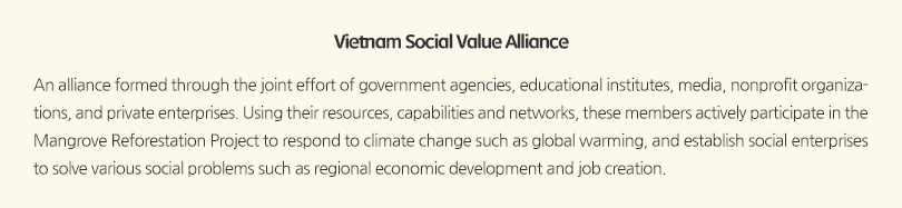 In 2018 and 2019, the Vietnam Social Value Alliance, including SK Innovation members in Korea, gathered 7 times to directly participated in the Mangrove Reforestation Project in Vietnam, which mostly took place in Tra Vinh Province. The 7th round of mangrove reforestation activity also includes the “I Green We Green Vietnam” campaign that called for actions to reduce single-use plastic products to protect the environment in Vietnam.