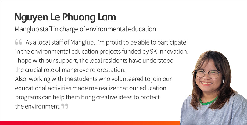 In addition to the mangrove seedlings planting activities, through Manglub, SK Innovation has also been actively operating diverse environmental education programs for local residents.
