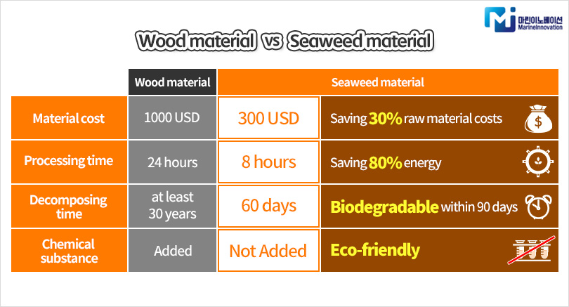 ▲ The cost reduction effect of Marine Innovation’s packaging products made of seaweed by-product