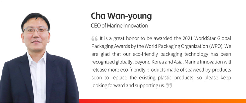 Marine Innovation, a social venture supported by SK Innovation, has announced that its eco-friendly egg tray made of seaweed by-products won a special award at WorldStar Global Packaging Awards 2021.