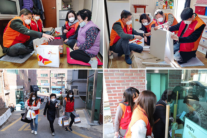 2月26日,SK综合化学CEO罗庚秀和SK润滑油CEO车圭卓与成员们一起,为因行动不便而处于缺食危机的独居老人,开展了“SK Innovation集团温暖一顿饭”服务活动。亲自访问59户独居老人家庭,不仅送上了温心便当,还送上了另外准备的口罩、坚果及茶点等,分享了幸福和温暖。另外,此次送去的便当是在地区市场购买食材并由小型餐馆直接烹制的,与因新冠肺炎而经历经营危机的地区小工商业者相辅相成,因此其意义更为重大。