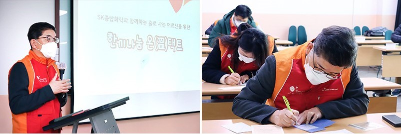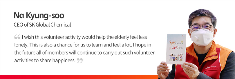 ▲ SK Global Chemical CEO Na Kyung-soo delivered messages and wrote letters to encourage the elderly living alone before visiting them