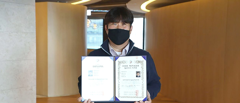 ▲ Lee Su-hyun showed his Foot Massage Certificate.