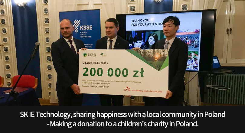 On October 2 (local time), SK IE Technology held a donation ceremony in which PLN 200,000 (approx. KRW 60 million) were granted to GODNE Życie, a children’s charity.