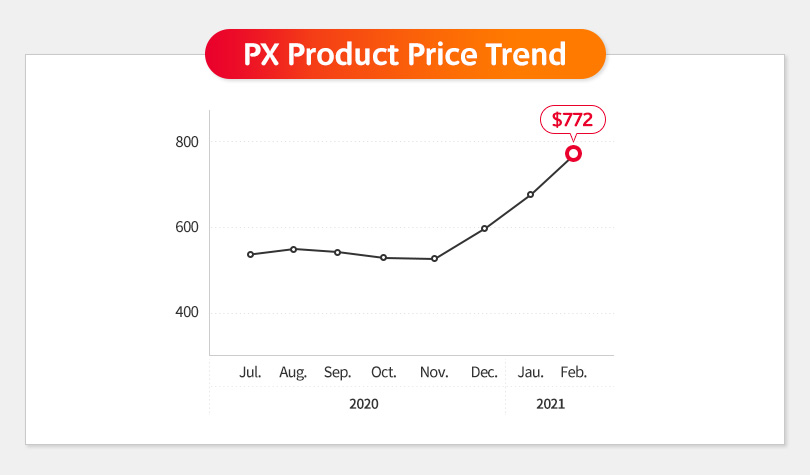 In the industry, the recent PX product price recovery is remarkable. The PX product market has not escaped from the decline for more than a year due to PX products’ oversupply from China and sluggish petrochemical product demand due to the global economic recession.