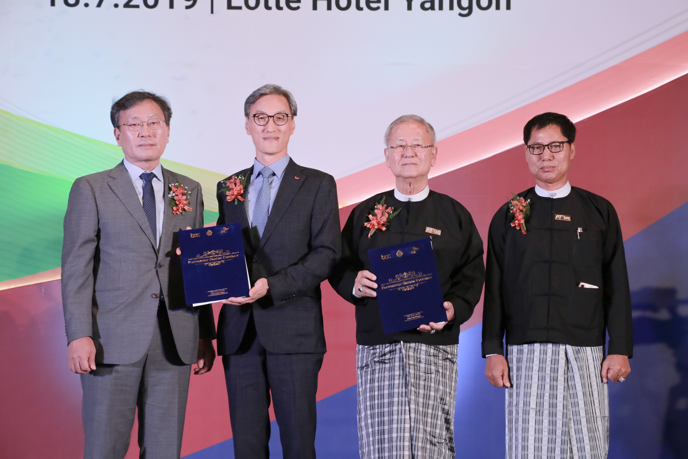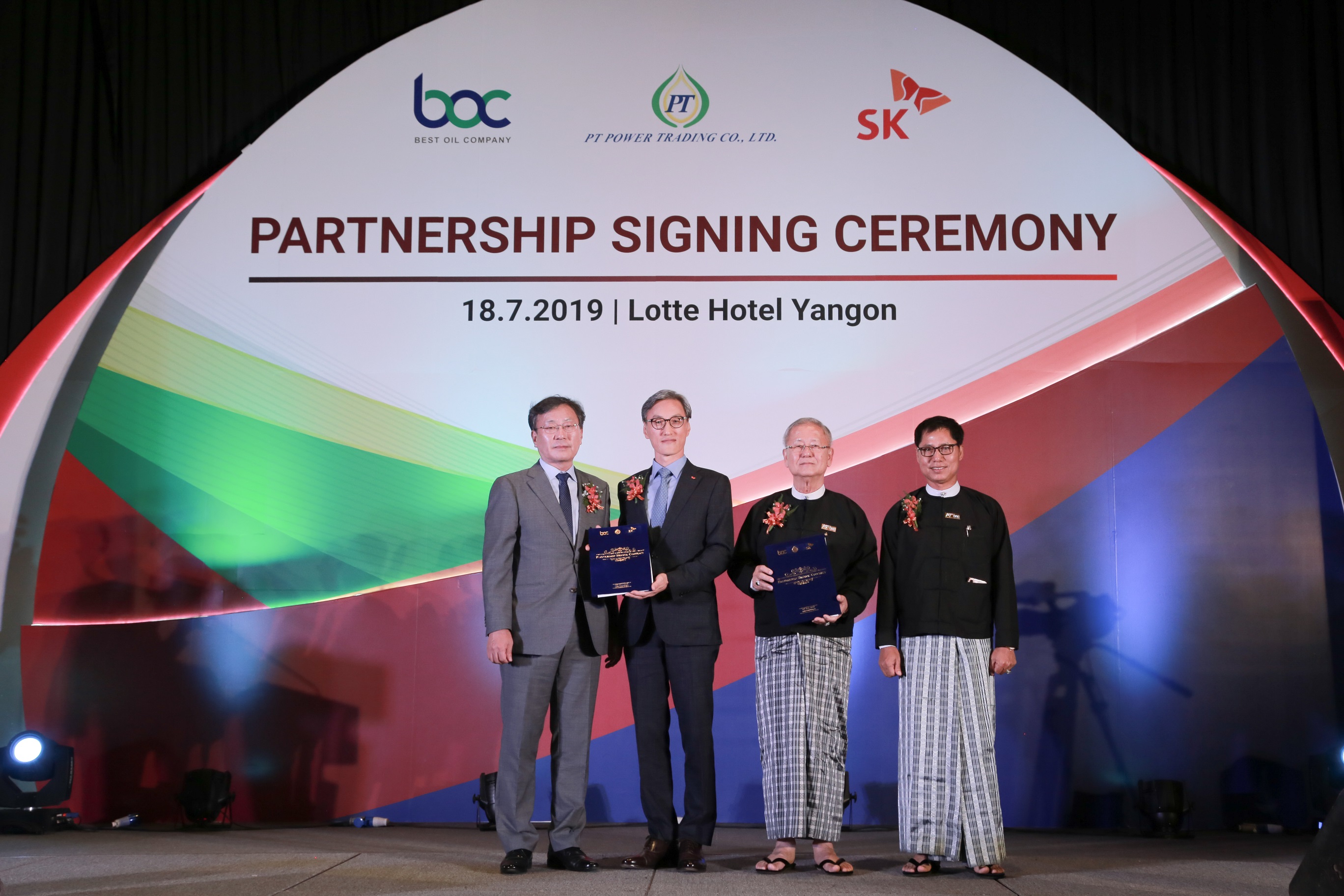 More than 500 people attended the contract signing ceremony held on this day at Lotte Hotel Yangon, Myanmar, including SK Energy CEO Cho Kyong-mok, SK Trading International CEO Suh Sok-won, BOC Chairman Aung Shwe, and BOC CEO Win Swe.
