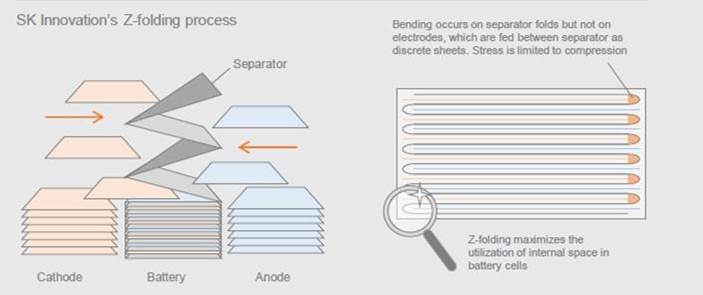 When stacking the separators inside the battery, SK Innovation uses the Z-folding technology.