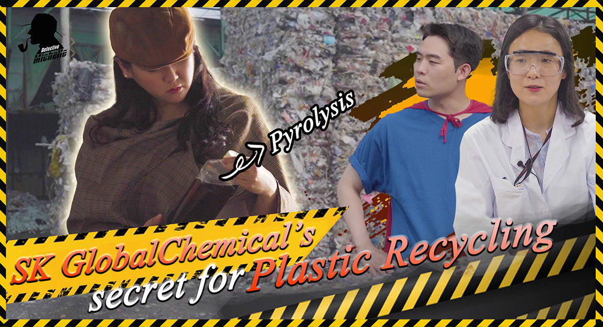 Detective Michelle is back with a new mission: looking for the secret of SK Global Chemical’s pyrolysis technology. This time, she was accompanied by “Earth Protector.” They sneaked into SK Innovation’s Institute of Environmental Science & Technology to learn about how we can use pyrolysis oil to not only re-produce plastic materials but also make high-quality lubricants, gasoline, and even clothes.