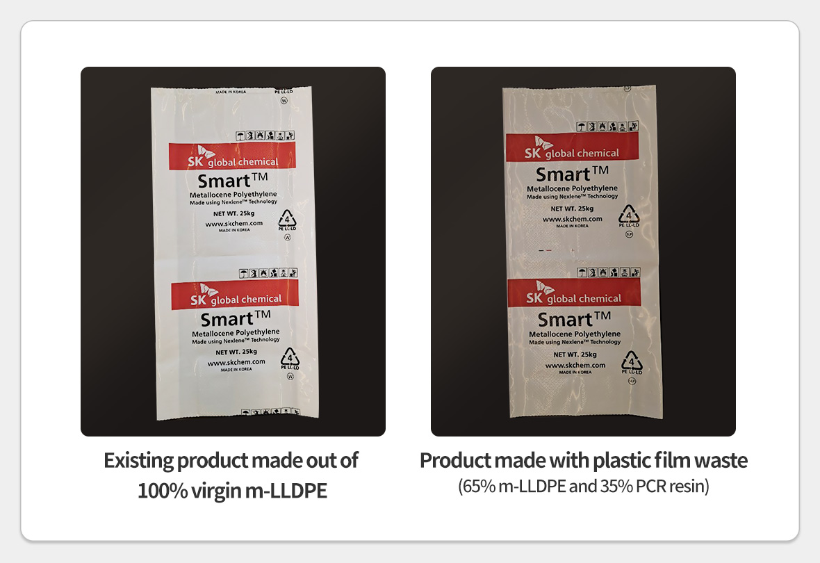 Dongmin Industrial Cooperative and SK Global Chemical mix the post-consumer recycled (PCR) Resin from the plastic film waste and virgin plastic to manufacture upcycled films and fabrics. Unpleasant odor inevitably occurs in this process; however, Dongmin Industrial Cooperative managed to use its technology to eliminate the odor and achieve a quality almost similar to virgin plastic. The upcycled films will be used for making the sacks to hold SK Global Chemical’s high-performance polyethylene, Nexlene™.