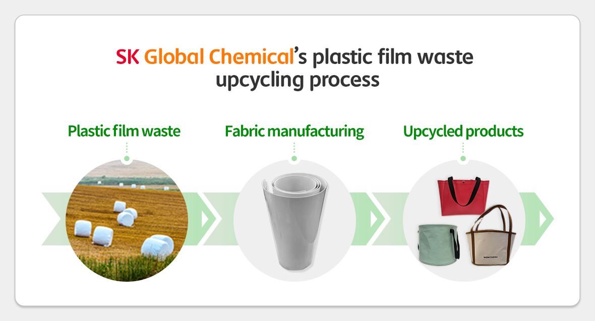 To solve this problem, Dongmin Industrial Cooperative, a partner of SK Global Chemical, collects about 50% of the plastic film waste from the farms and SK Global Chemical uses them to create new products.
