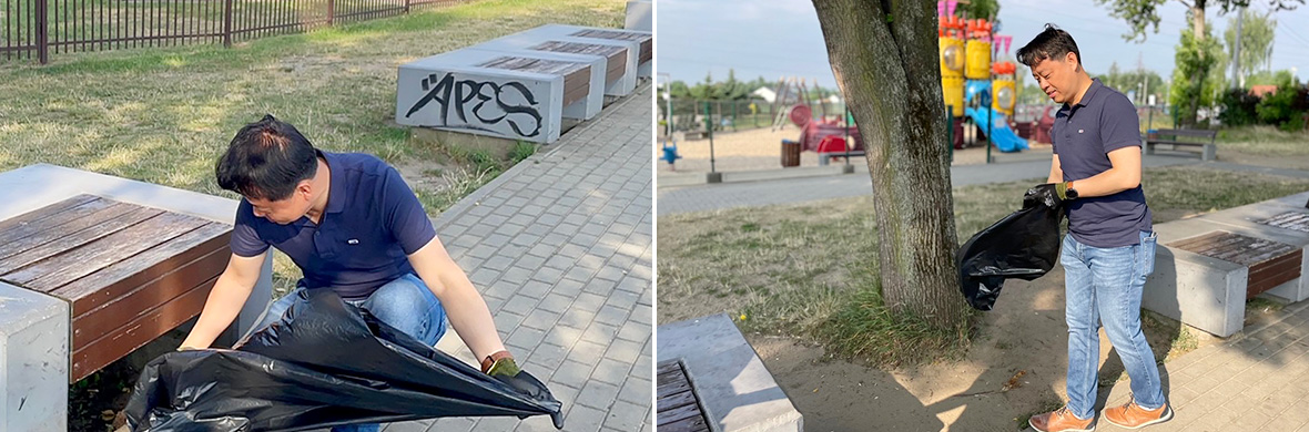 ▲ CEO of SKBMP Park Byoung-chul took part in Sanhaejinmi Plogging around Lake Pogoria, Dabrowa Gornicza, Silesian Voivodeship, Poland on and July 9th, picking up plastic waste. – The event took place after the Polish government lifted the obligation to wear masks outdoors.