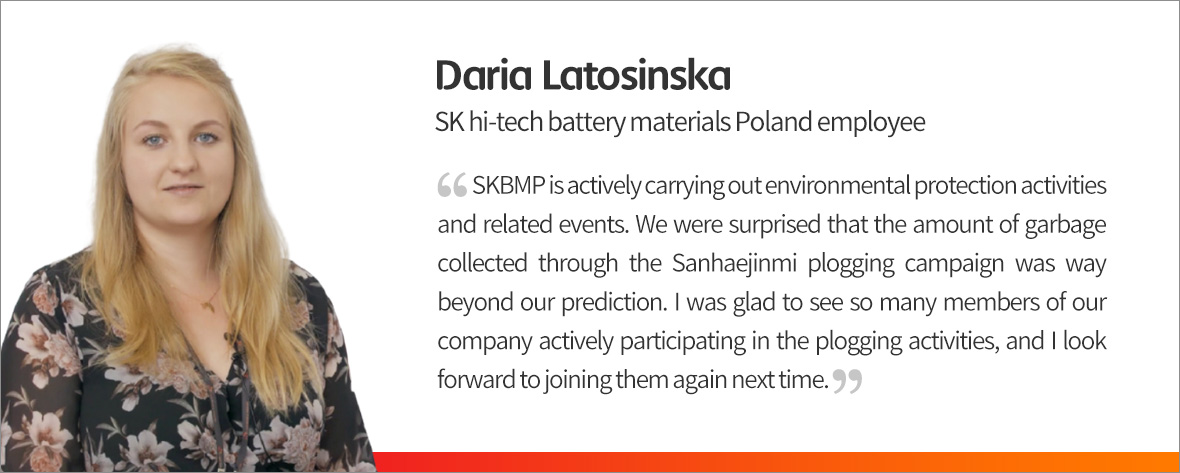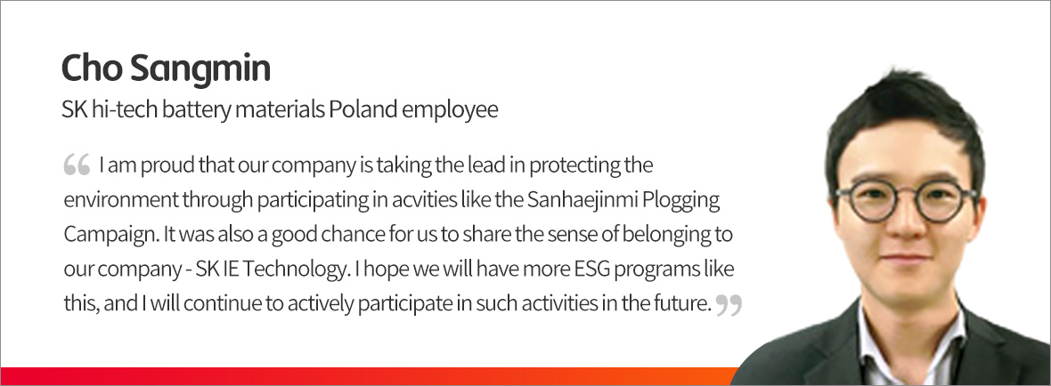 SK Innovation and all of its subsidiaries are committed to encouraging not only Koreans but people all around the world to protect the environment by taking parts in various ESG activities that can be done in our daily life such as the Sanhaejinmi Plogging Campaign. Beyond Korea, China, and Poland, the program is expected to spread to other overseas business sites of SK Innovation as well.