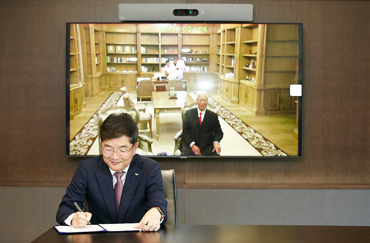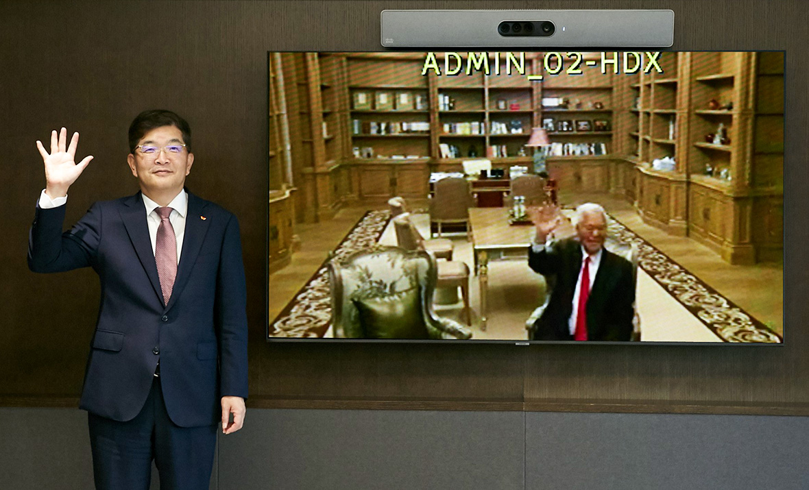 第 一, 第二, (左)SK Geo Centric 罗庚秀社长和(右)APP集团黄志源董事长参加9月15日线上MOU签约仪式