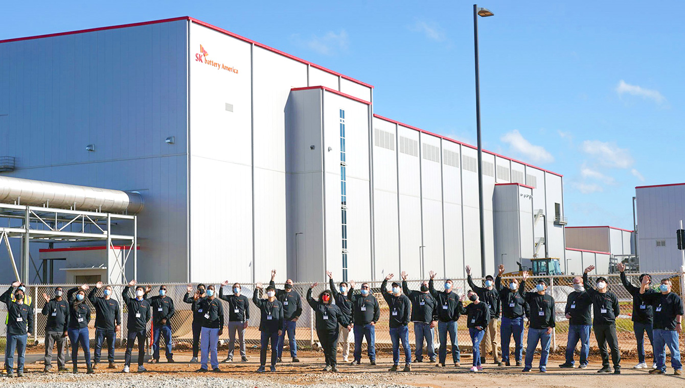 ▲ SK Battery America’s manufacturing plant is located at Commerce City, Jackson County, Georgia, USA