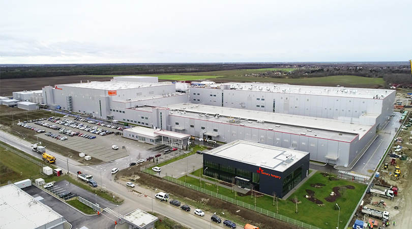 ▲ SK Innovation’s battery production plant in Komarom, Hungary. Currently, the Plant 1 to produce batteries with an annual capacity of 7.5 GWh is completed. When Plant 2 is completed, these facilities will be able to manufacture batteries of 16.5 GWh per year.