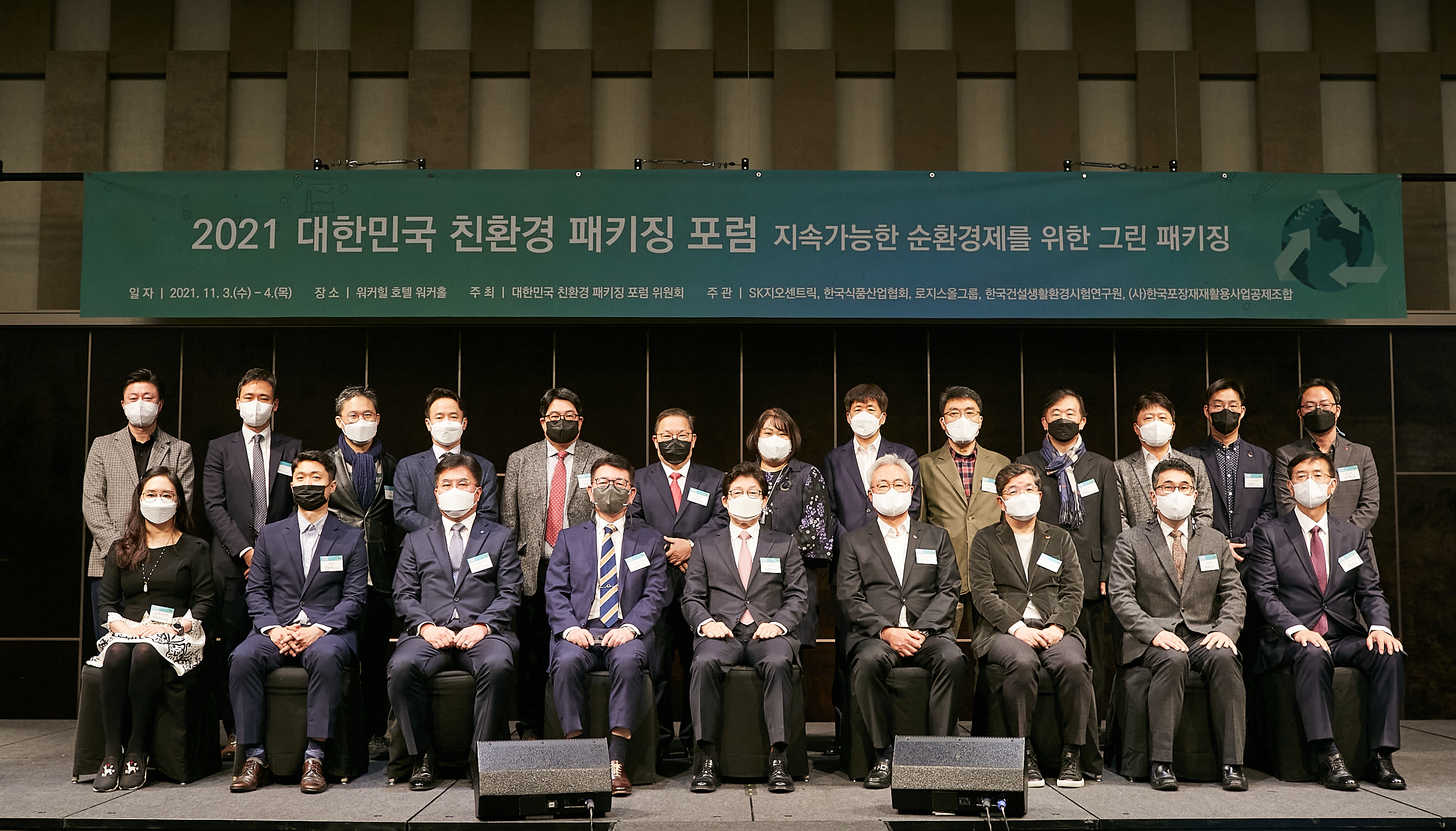 (Photo 1, 2) Participants of the 2021 Korea Eco-friendly Packaging Forum take a commemorative photo at the event on November 3, 2021.