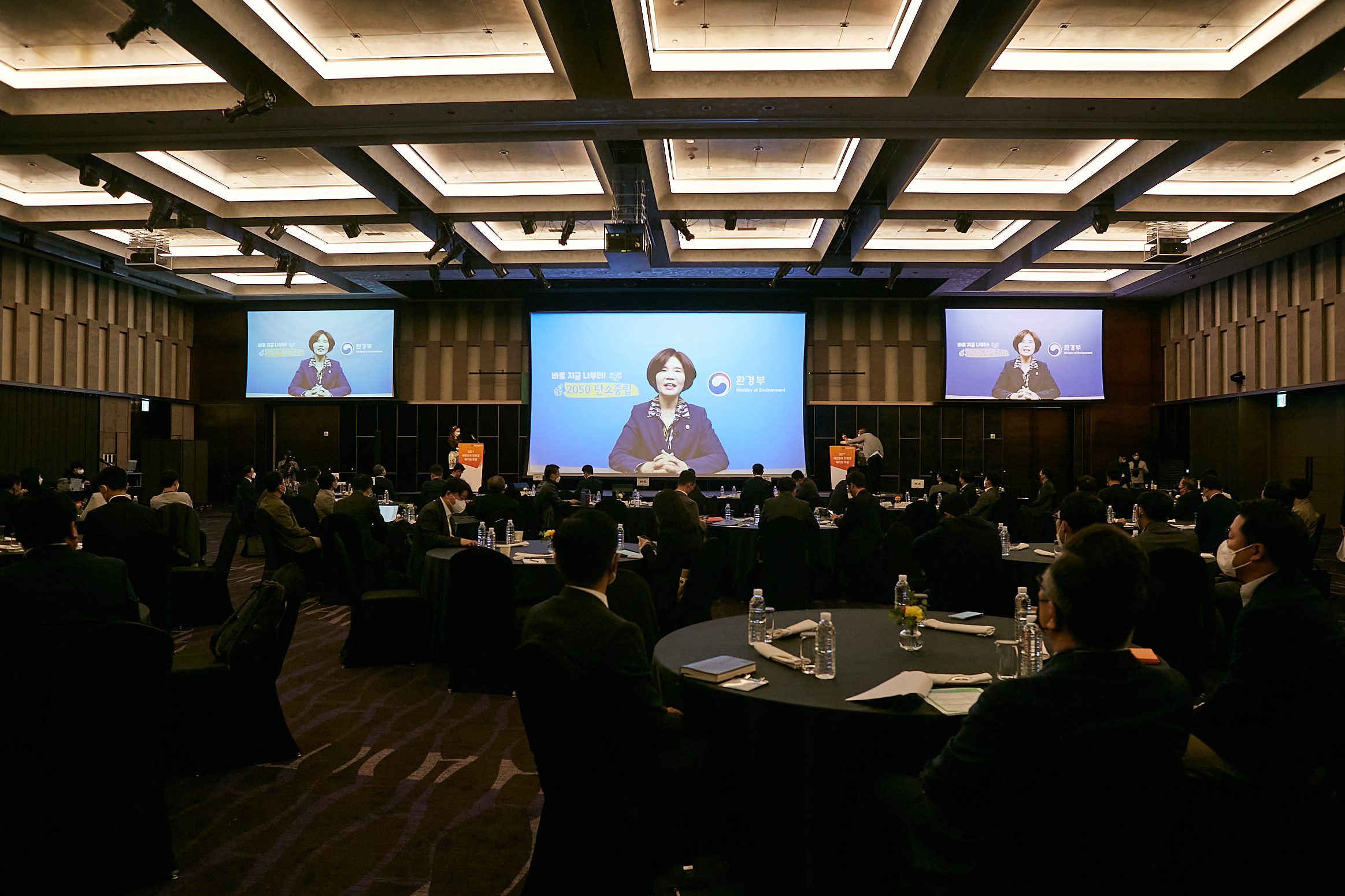 (Photo 3) Participants of the 2021 Korea Eco-friendly Packaging Forum watch a congratulatory video from Minister of Environment Han Jeoung-ae