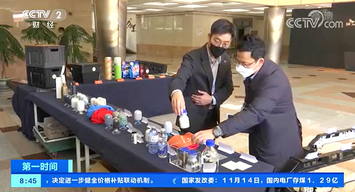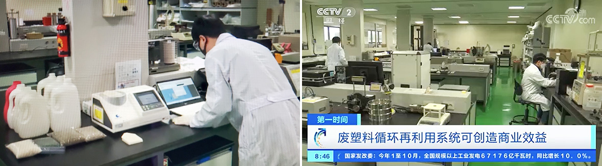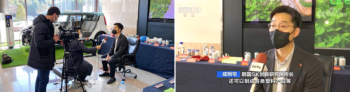 ▲ (左) CCTV报道的SKGC废塑料再利用技术研发现场 / (右)11月17日CCTV报道截图 – 来源:CCTV (https://bit.ly/3kMaEuA)