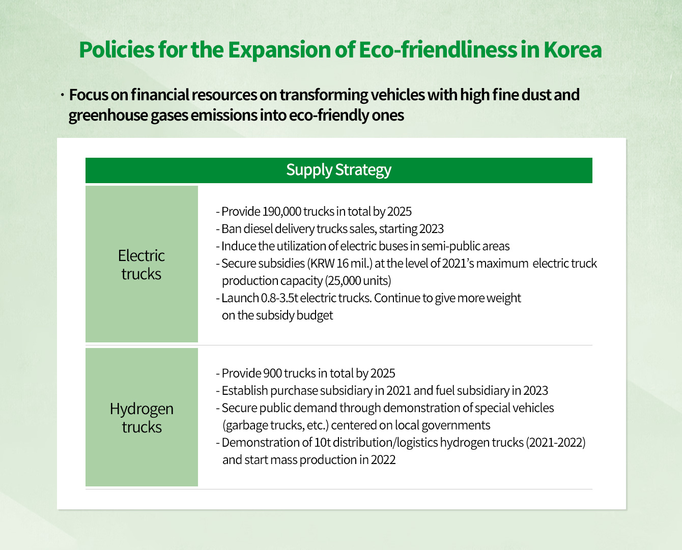 Recently, starting with the EU, emission gas regulations have been strengthened and more policies to support eco-friendly vehicles have been introduced, so eco-friendly commercial vehicles are rapidly being developed.