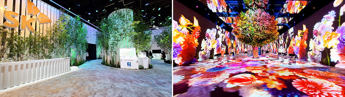▲ Green Avenue zone (left) and Tree of Life zone (right) in SK’s Green Forest Pavilion at CES 2022